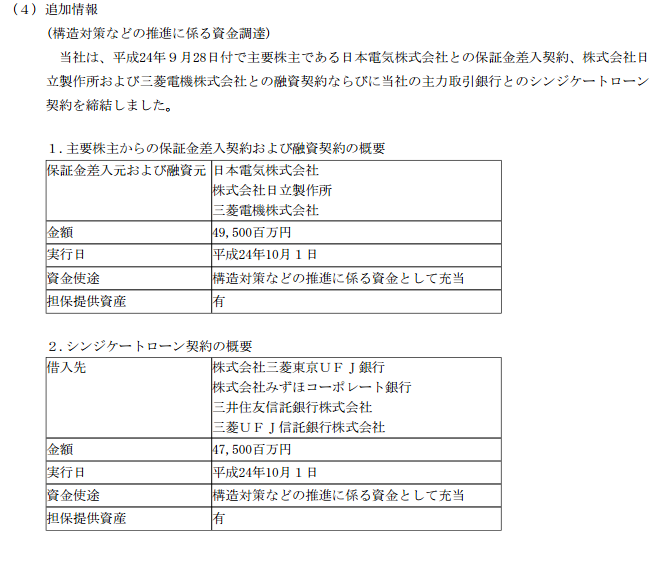 しかし、以下のとおり約2.5千億円の構造改革や長期資金の手当として融資される。