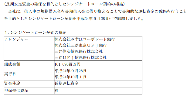 一方で、BSは今後、明らかに好転する。 理由は以下に引用する、親会社、金融機関からの長期融資による。総資産7.5千億円に対し、純資産がすでに1千億円。このあと350億円程度、純損失が増える見込みであるから、期末には純資産が650億円程度になり、かなり純資産が薄くなる。赤字体質を抜けない企業に対しては融資が通常降りないか、短期の融資しかつかないのが通常である。