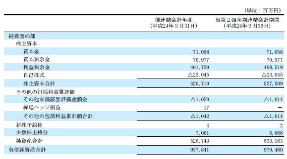 次にBSを見ておきたい。約1兆円の総資産に対し、負債が4千4百億円。現時点で赤字転落しているわけでもないので、いますぐに会社がどうこうなるレベルではまったくない。
