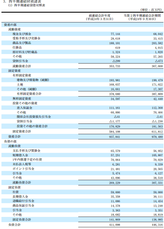 まとめると、売上の減少が即利益減少につながる薄利多売ビジネスであり、業績的には厳しいが、財務状態から、いますぐ急に会社が倒れるというような危機ではまったくない。しかし、エコポイントによって稼いでいたものの穴埋めを期待していたエス・バイ・エルがその穴埋めを十分に果たしているとは考えにくく、中国進出も難しい今、次の収益のタネを捜索中、という状況とみてよいだろう。