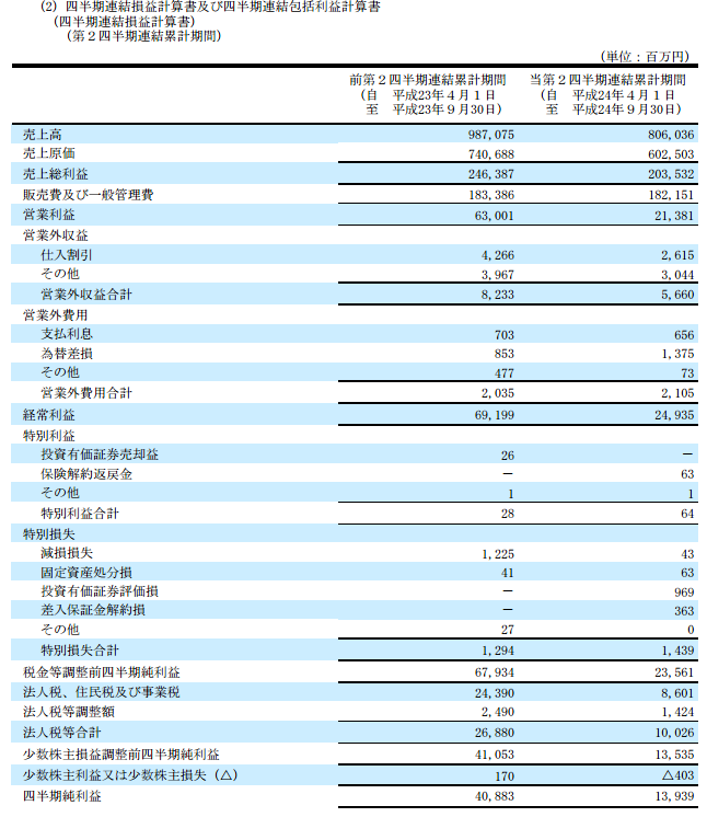 http://www.nikkei.com/markets/kigyo/gyoseki.aspx?g=DGXNASGD0805X_08112012DT3000