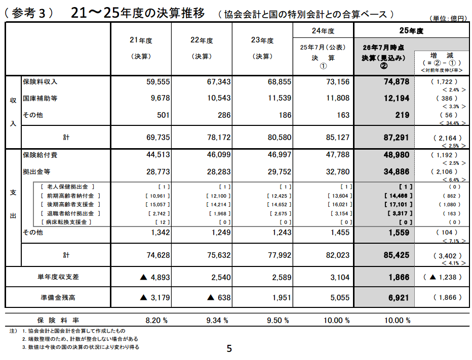 協会けんぽは黒字報道だが、実際は大幅赤字。決算書の見方に注意。