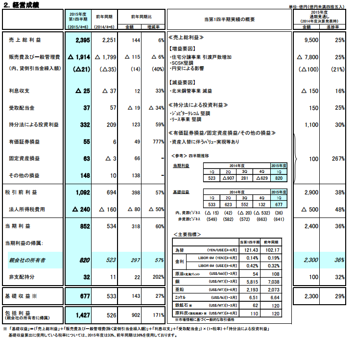 ○住友商事2016年3月期第一四半期決算短信