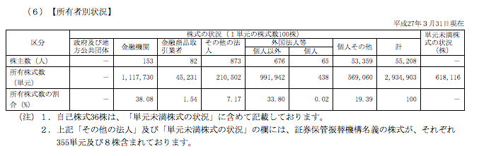 日本電産は、平成27年3月31日現在で外国人株主が33%以上います。同社の有価証券報告書から以下に引用しておきます。