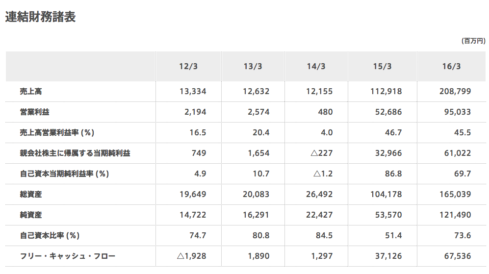 どれだけモンストがすごいのかというと、モンスト登場前、売上120億円程度であったのが、2015/3年、1,100億円を超え、2016/3に2,000億円を超えているのです。投資家は当然、この継続を期待します。信じられないくらい難しい経営をミクシイは今しているはずです。