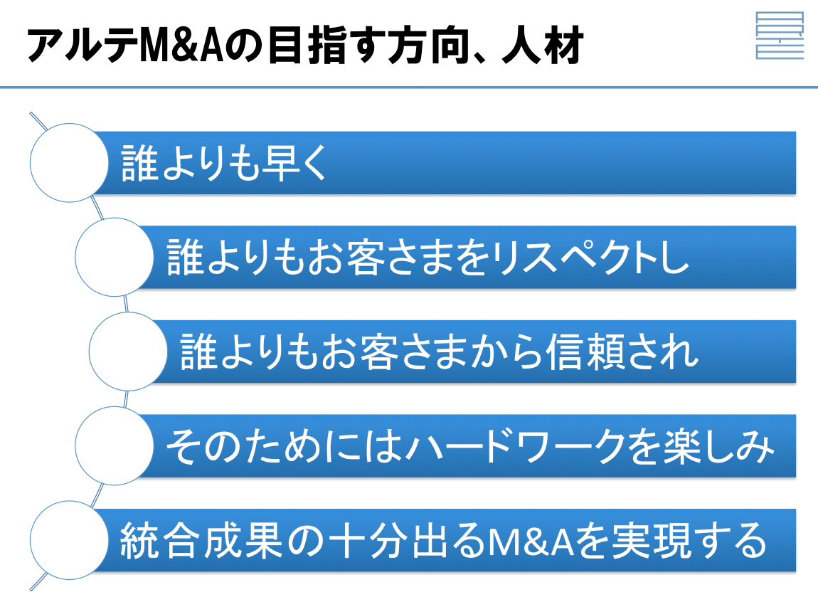アルテM&Aの目指す方向、人材をあらためてまとめてみました。